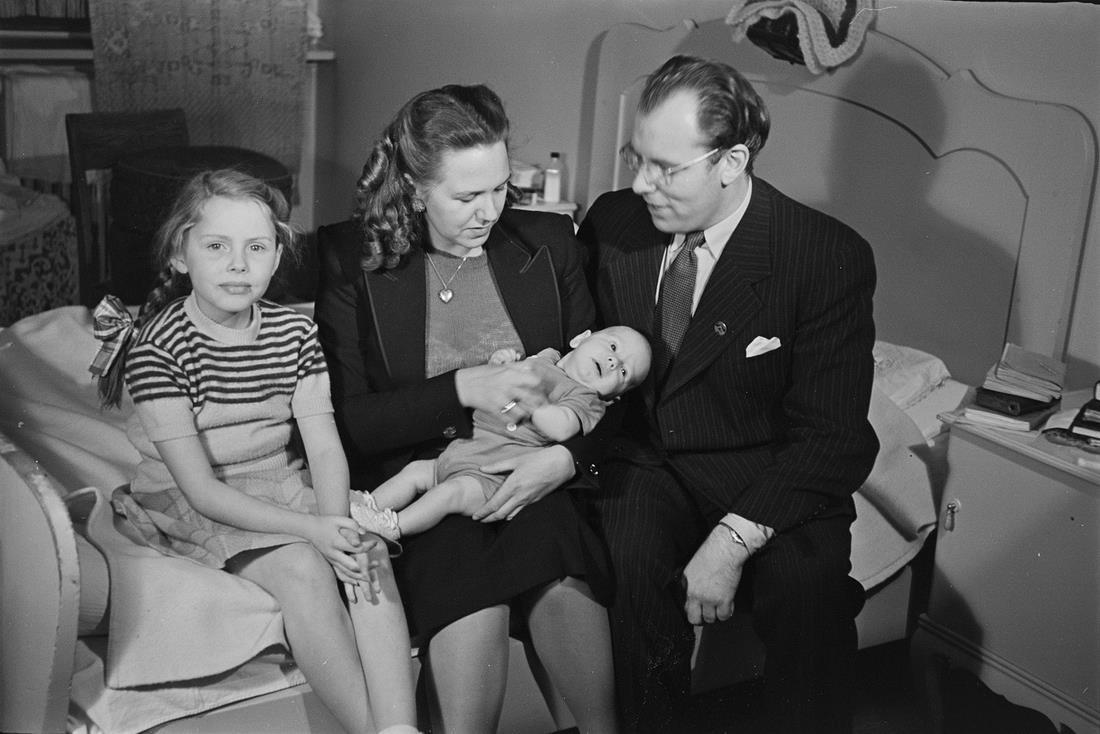 Fjölskylda. Karlmaður, kona, stelpa, ungabarn, strákur.