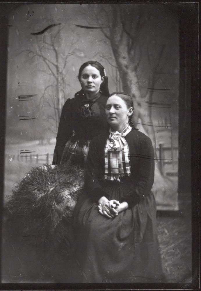 Tvær konur í peysufötum. Standandi er Ingunn Daníelsdóttir, húsfreyja og kennari á Reykjum í Lundarreykjadal. Hin konan er óþekkt.