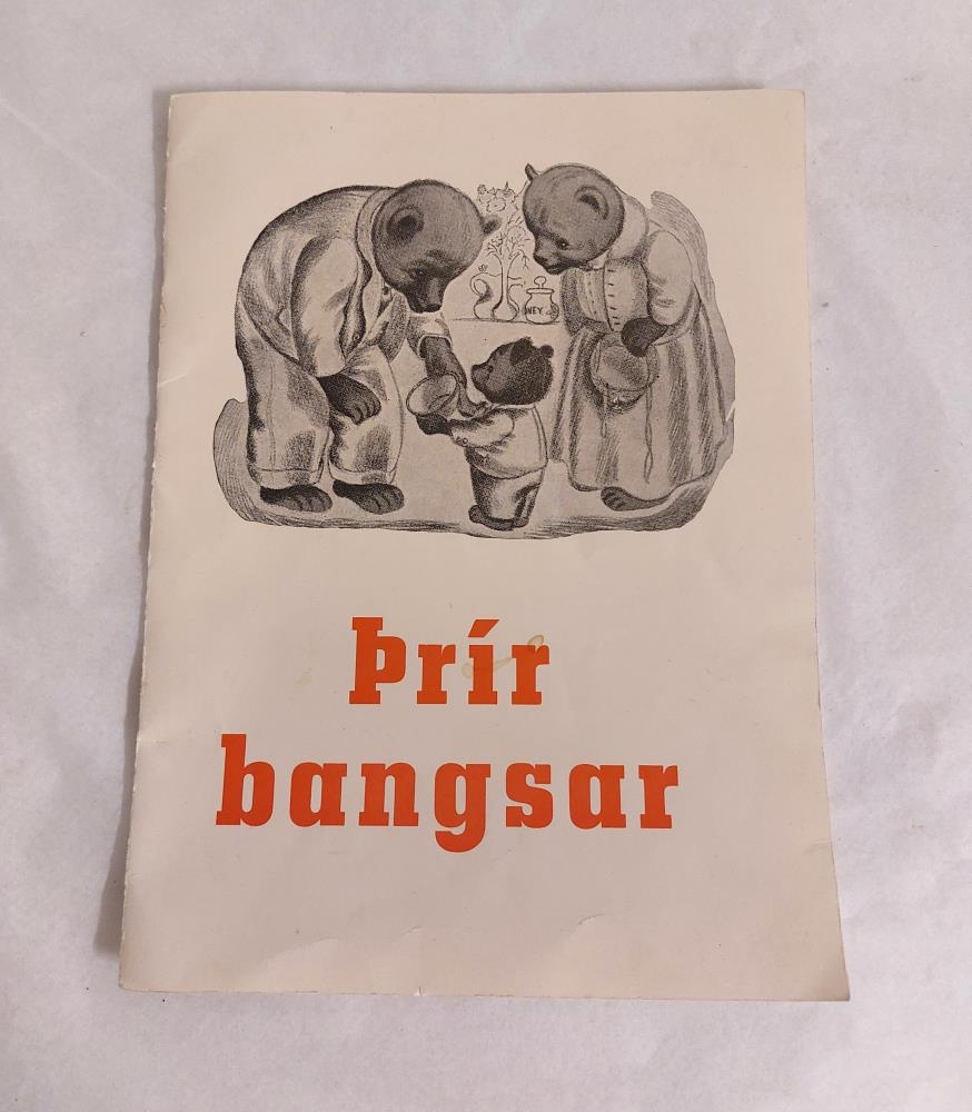 Af lager Kaupfélags Rangæinga, barnabókin "Þrír bangsar" etir Mary Cameron, Bjarni Bjarnason íslenskaði. Ónotuð, verðmerkt á bakhlið kr. 28,00 -Hluti af munum frá Kaupfélagssafninu á Hvolsvelli sem lagt var niður árið 2024.