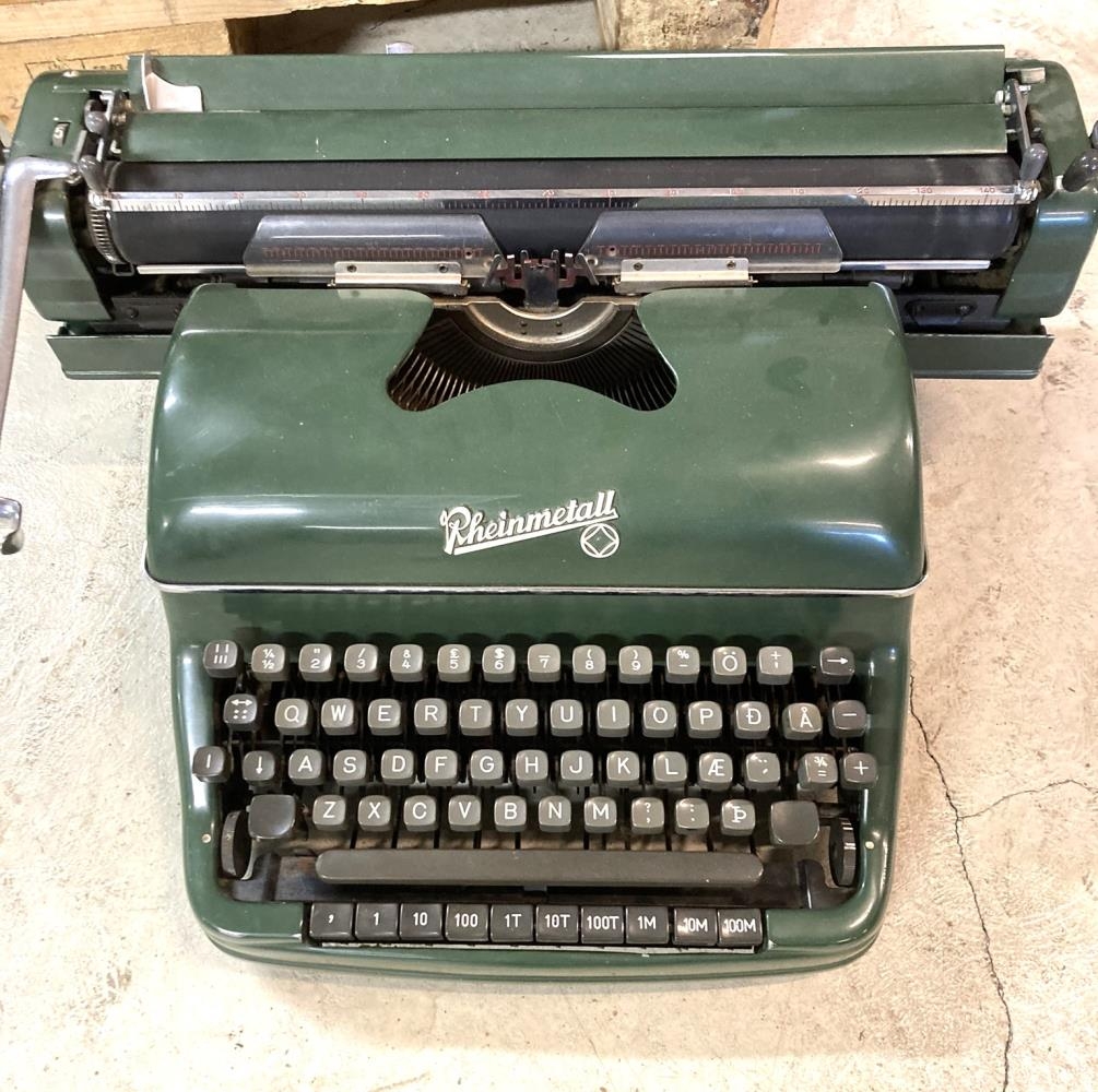 Græn rafmagnsritvél af tegundinni Rheinmetall. Hluti af munum frá Kaupfélagssafninu á Hvolsvelli sem lagt var niður árið 2024.