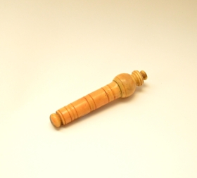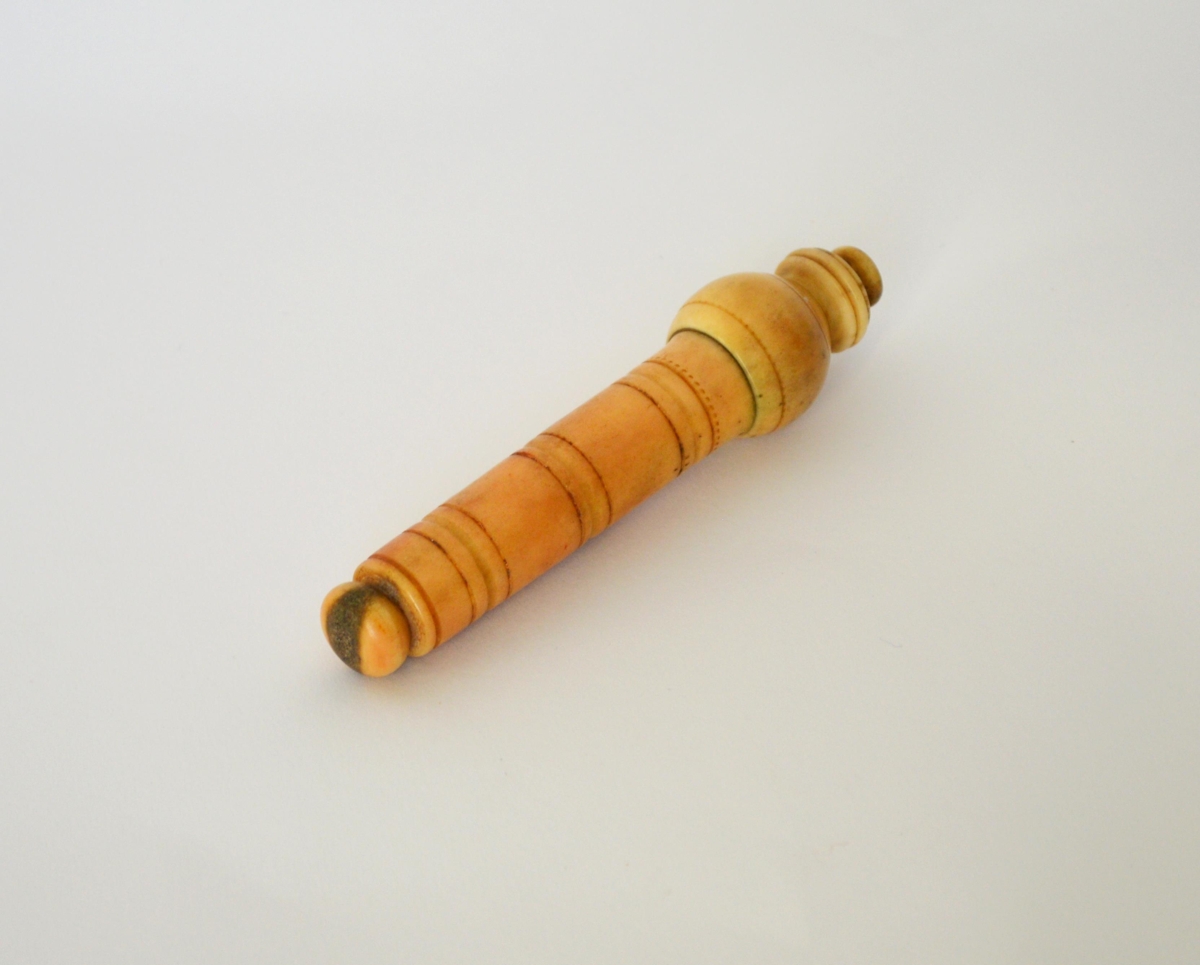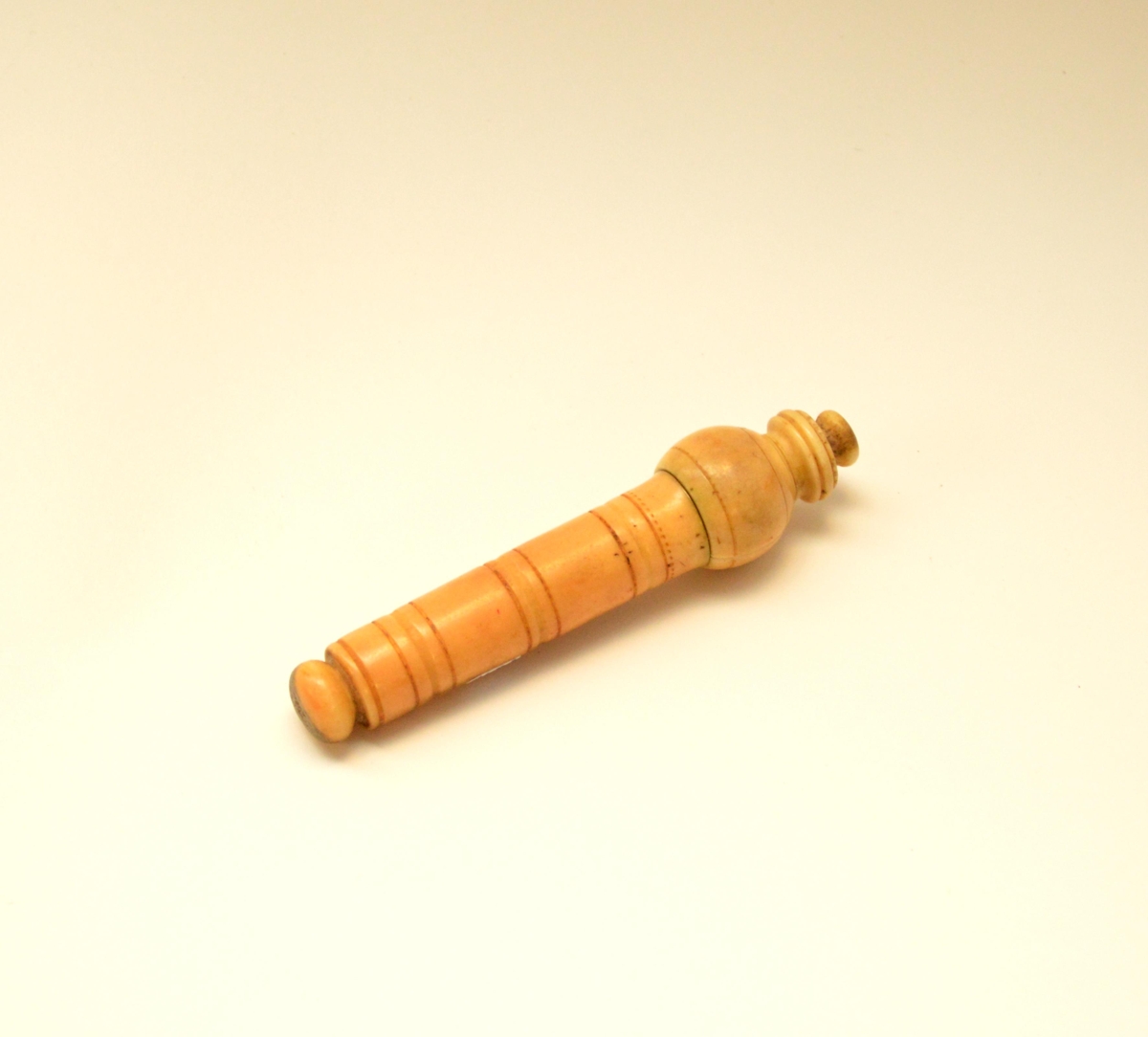 Nálhús fagurlega rennt úr hreindýrshorni, skrúfugangur úr kopar. Lengd 10 cm. Fagmannlega unnið.