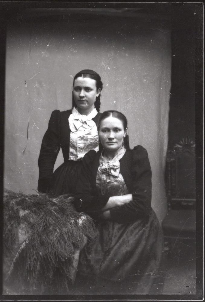 Tvær konur í peysufötum. Sú sem situr er Sigurbjörg Þorvarðsdóttir frá Hækingsdal, flutti til Ameríku 1901. Hin konan er óþekkt.
