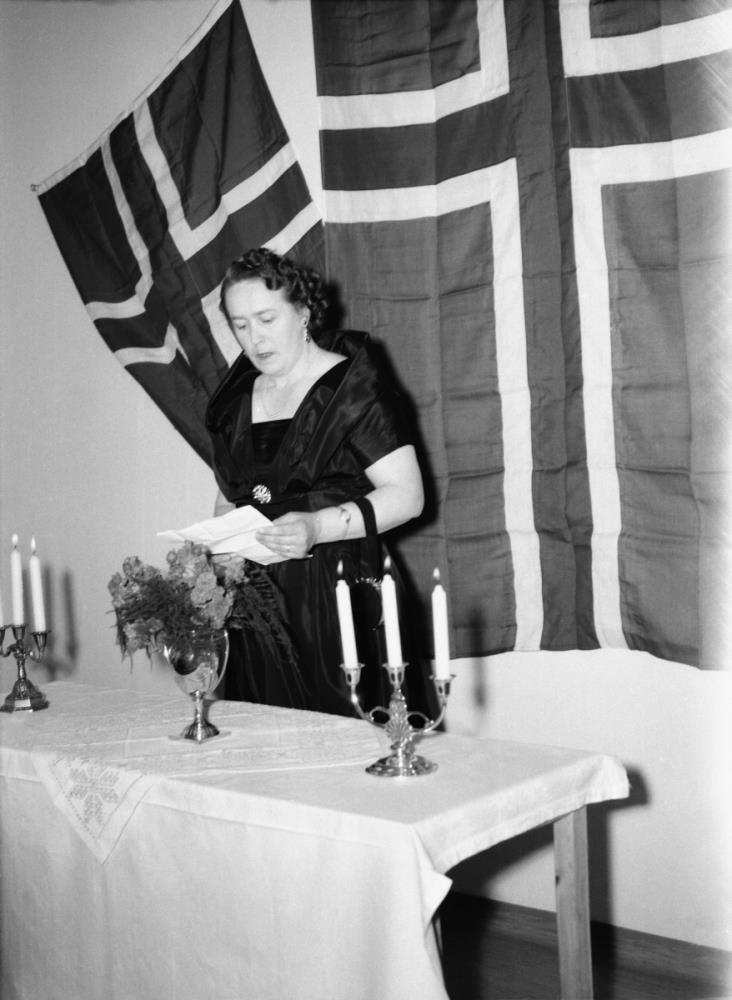 Vilborg Ámundadóttir, eiginkona Huxleys Ólafssonar, í ræðustóli