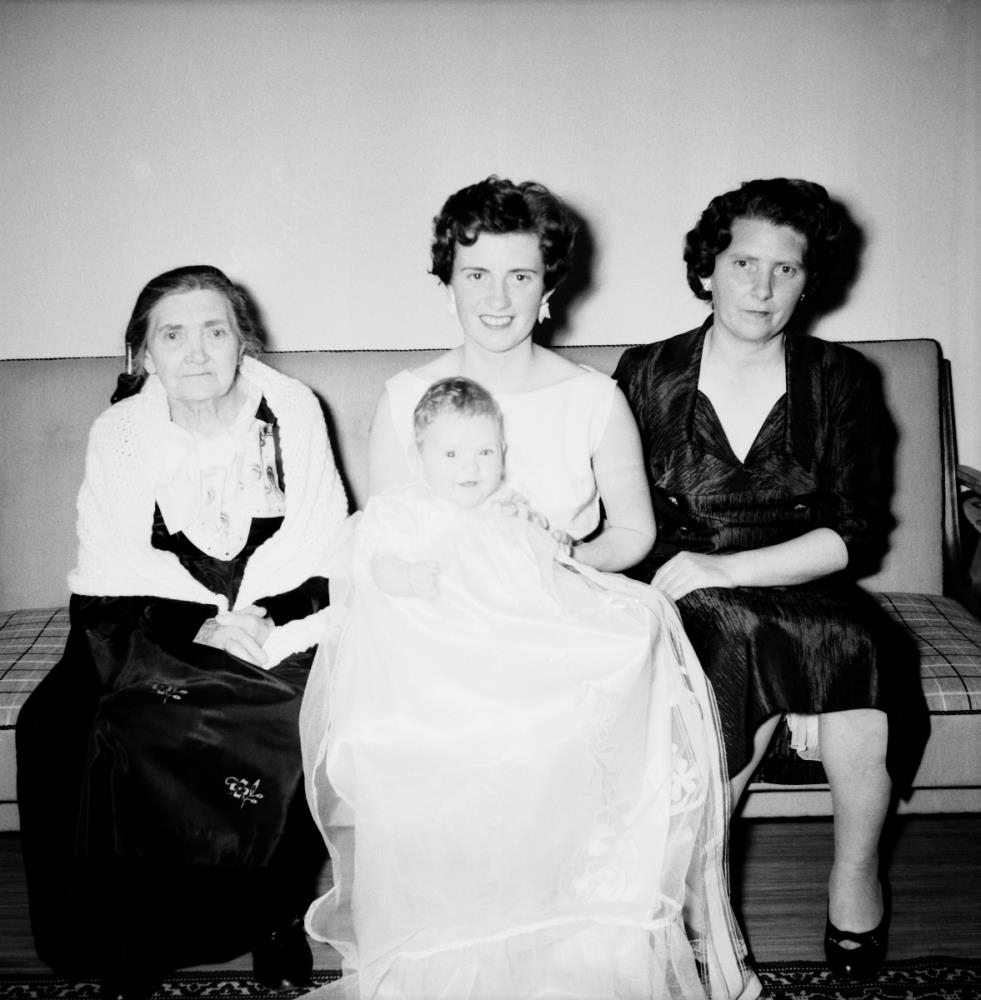 Erlendsína M. Sigurjónsdóttir fyrir miðri mynd með skírnarbarnið.