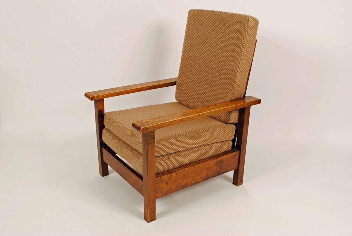 Hægindastóll teiknaður af Valgeiri Björnssyni með þremur sessum. Teikningar af stólnum eru ársettar 1932. Grind stólsins er úr viði.