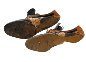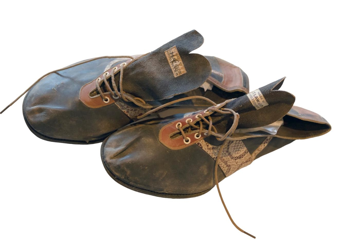 Svartir gaddaskór með rauðbrúnu leðri kringum kósa og á báðum hliðum munstrað gervileður.