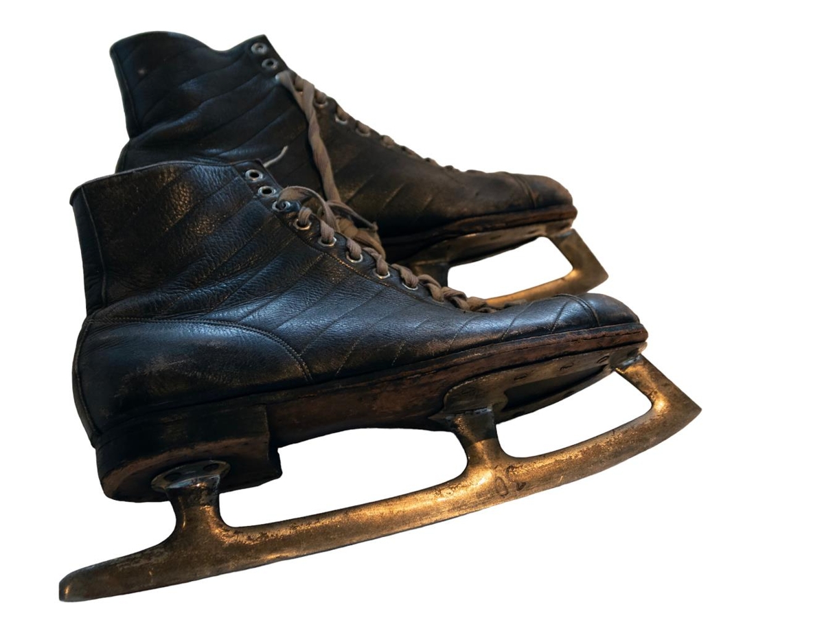Skautaskór eru handsmíðaðir af Jóni Þorsteinssyni skósmiðameistara og skautar gerðir úr bílfjöður af Halldóra Arnórssyni gervilimasmiði.