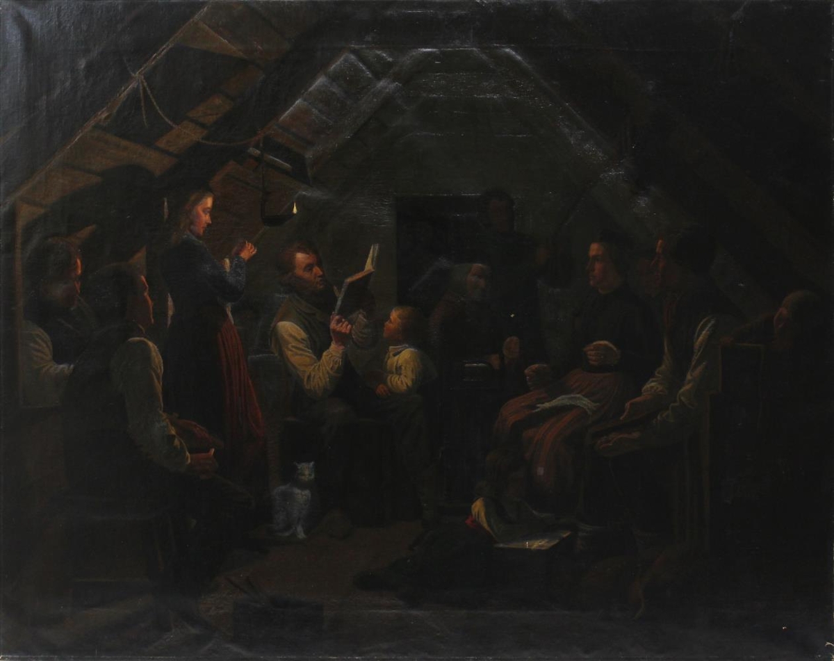 Málverkið er eftirgerð Kristínar Vídalín Jacobson af verki eftir August Schiött, Kvöldvaka eða Á vökunni frá 1861. Það verk er í eigu Þjóðminjasafns Íslands, Þjms Víd-60, og er hluti af safni Jóns Vídalín, sem var bróðir Kristínar.