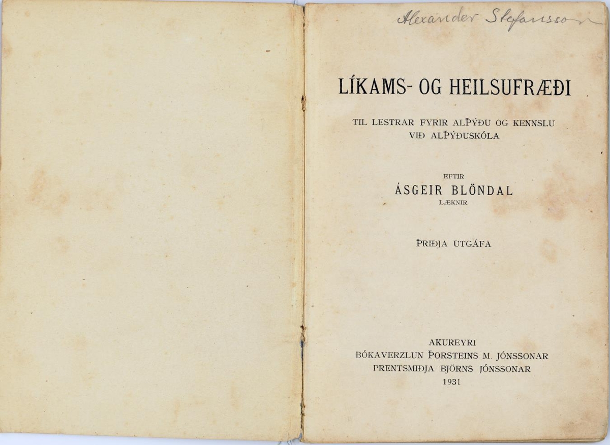 Líkams- og heilsufræði : til lestrar fyrir alþýðu og kennslu í alþýðuskólum / Ásgeir Blöndal. - 3. útgáfa. - 70, [1] bls. : myndir
