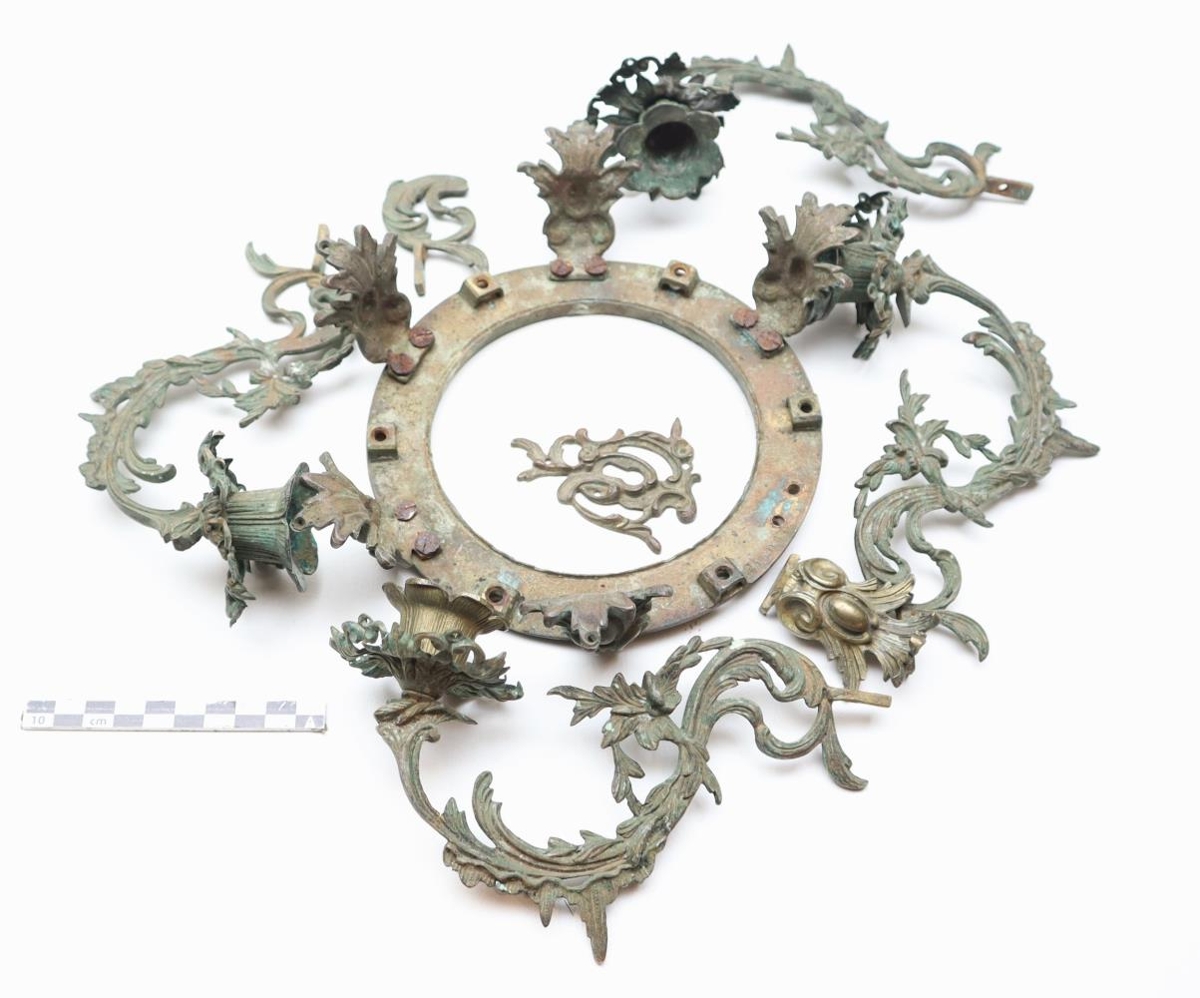 Ljósakróna í brotum. Hafði lent í snjóflóði á Ströndum eða Vestar (ekki alveg vitað hvar)
