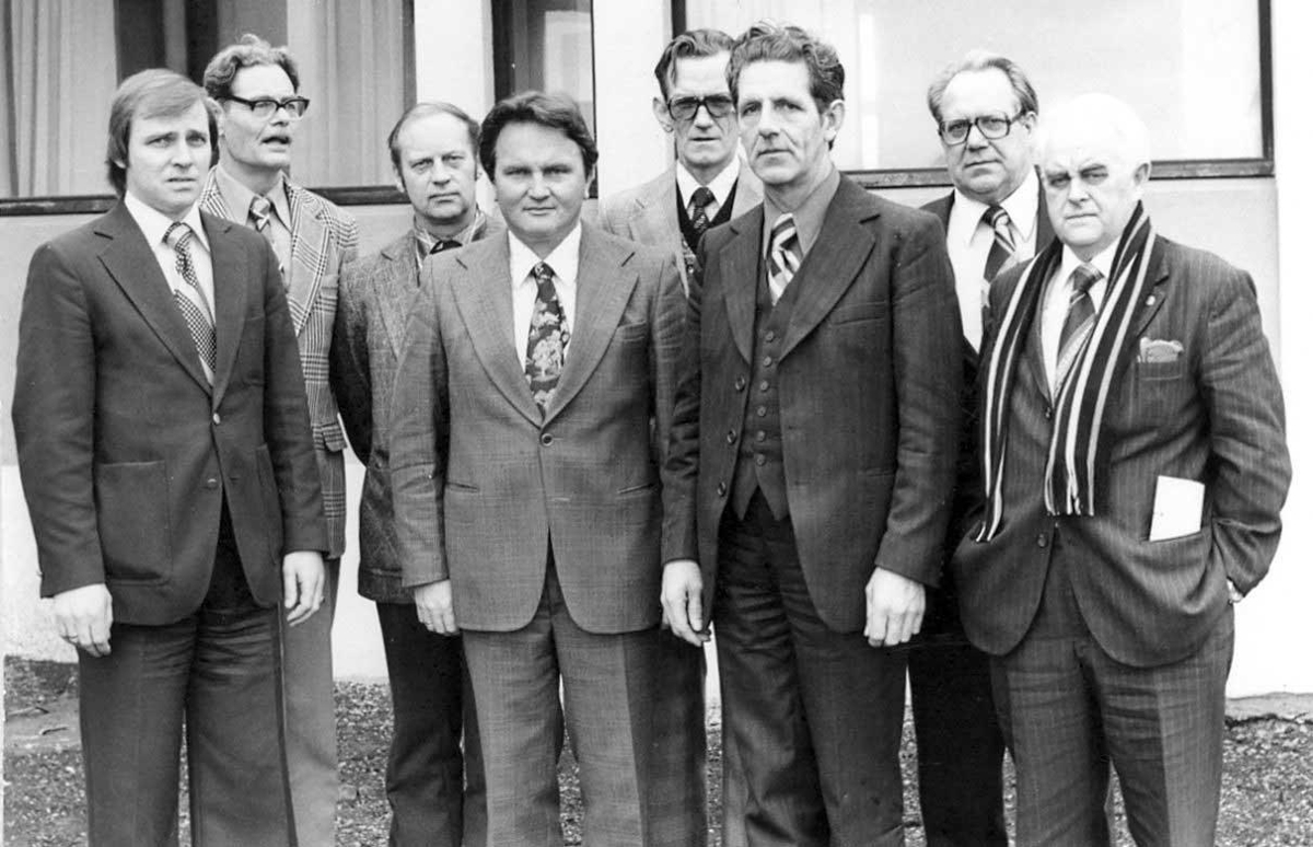 Kaupfélagsstjóri KSK og kaupfélagsstjórn 1977: Ólafur Guðmundsson, Sigurður Brynjólfsson, Jón V. Einarsson, Gunnar Sveinsson kaupfélagsstjóri, Kristinn Björnsson, Friðrik Sigfússon, Benedikt Jónsson og Svavar Árnason.