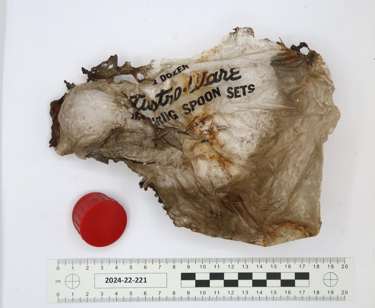 Plast utan um mæliskeiðar (12 saman á hring), 3 stk voru í pokanum. Vörumerkið er Lustro Ware, amerískt fyritæki.
