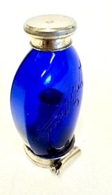 Glas / flaska úr bláu gleri með stálumgjörðum, tappa og festingum að neðan og hólfi að innan líka. Fannst á loftinu í Gránufélagsgötu 19 (Jónasínuhúsi) árið 1971-72. Er líklega hrákaflaska sem hefur verið notuð vegna berklasýkinga en þá spýttu sjúklingar í slíka flösku til að bera ekki smit í hráka.