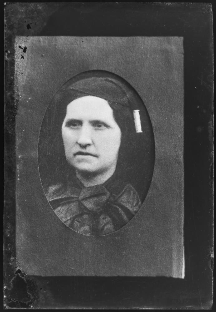 Jórun Hannesdóttir í Valadal, föðuramma Péturs Hannessonar. Eftirtaka úr fjölskyldumynd Arnórs Egilssonar af Pétri Pálmasyni, konu hans Jórunni og börnum þeirra.