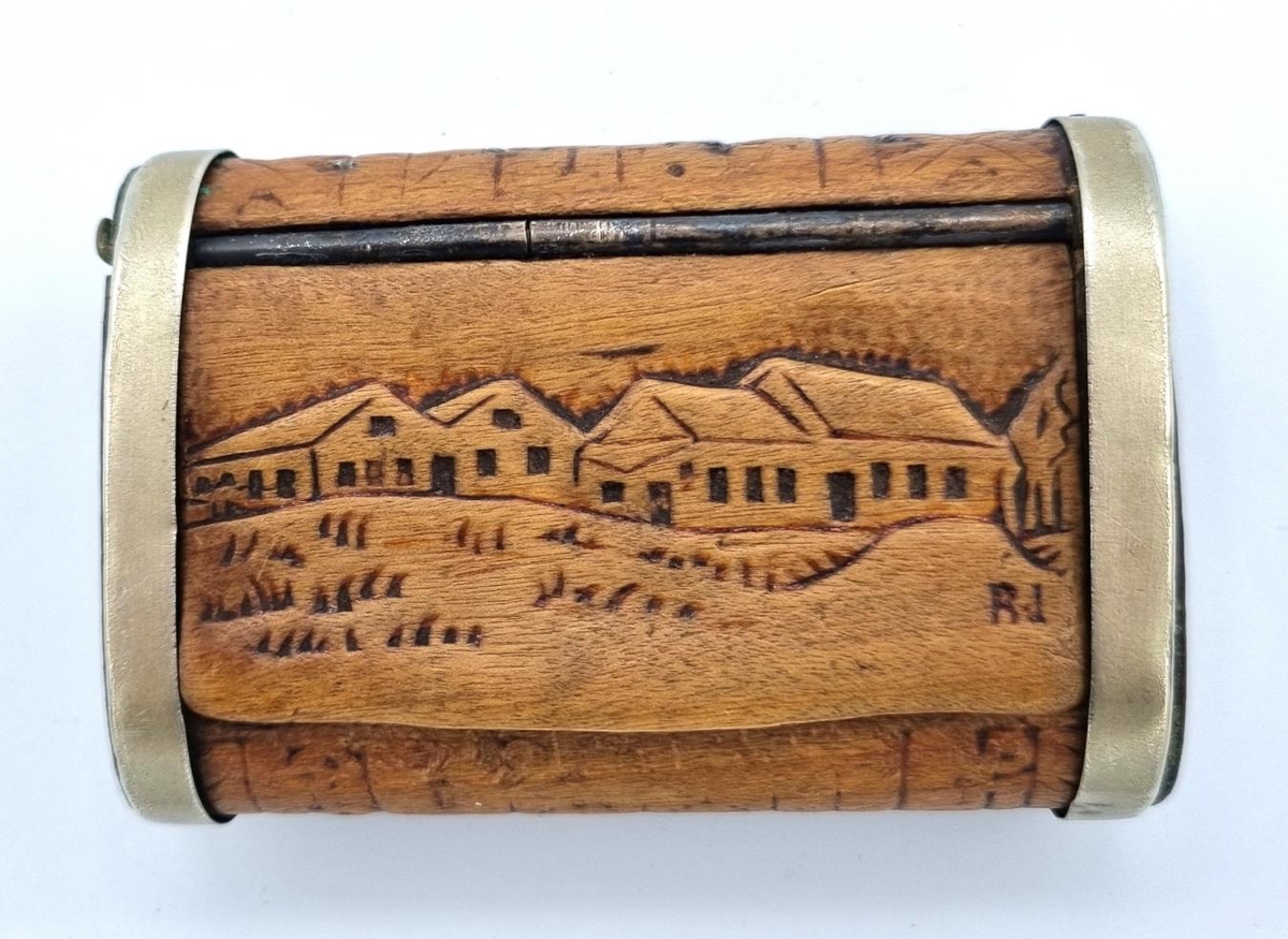 Tóbaksdósir úr við, útskorin. Tóbaksdósir Böðvars Magnússonar hreppstjóra á Laugarvatni.