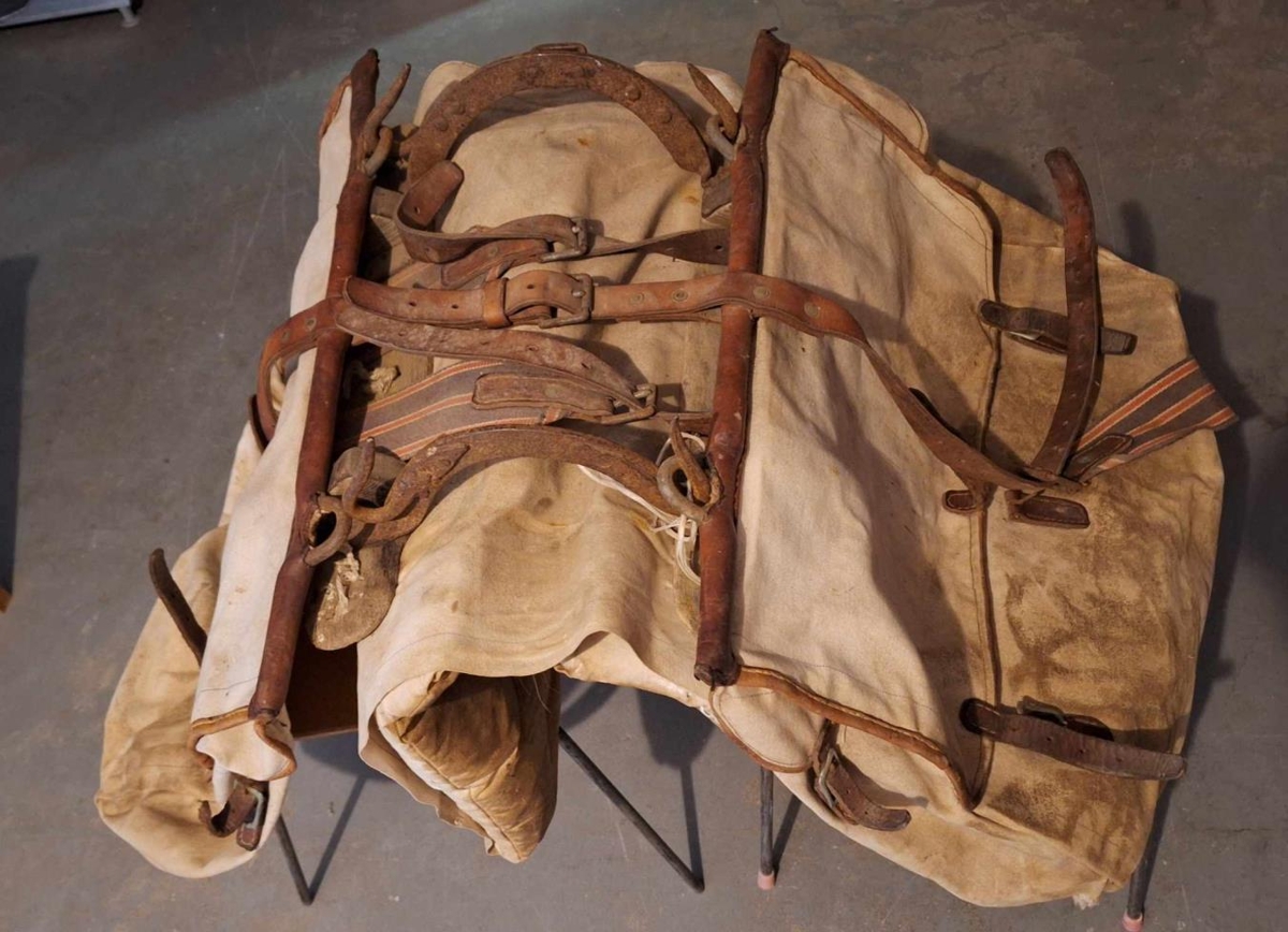 Gripir úr búi Brynjólfs Sæmundssonar og komu upphaflega frá konu hans Erlu Þorgeirsdóttur á Hólmavík, með millilendingu í Minjasafninu Kört í Árnesi. Trússtaska saumuð af Þórði Bjarnasyni, Ljúfustöðum líklega um 1970 fyrir Brynjólf Sæmundsson