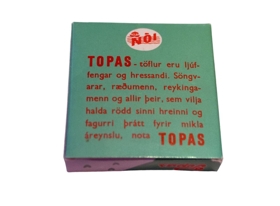 Texti á pakka: Tópas töflur eru ljúfengar og hressandi...