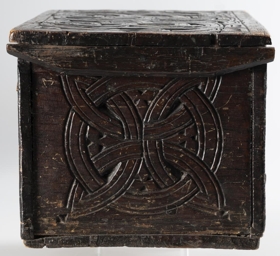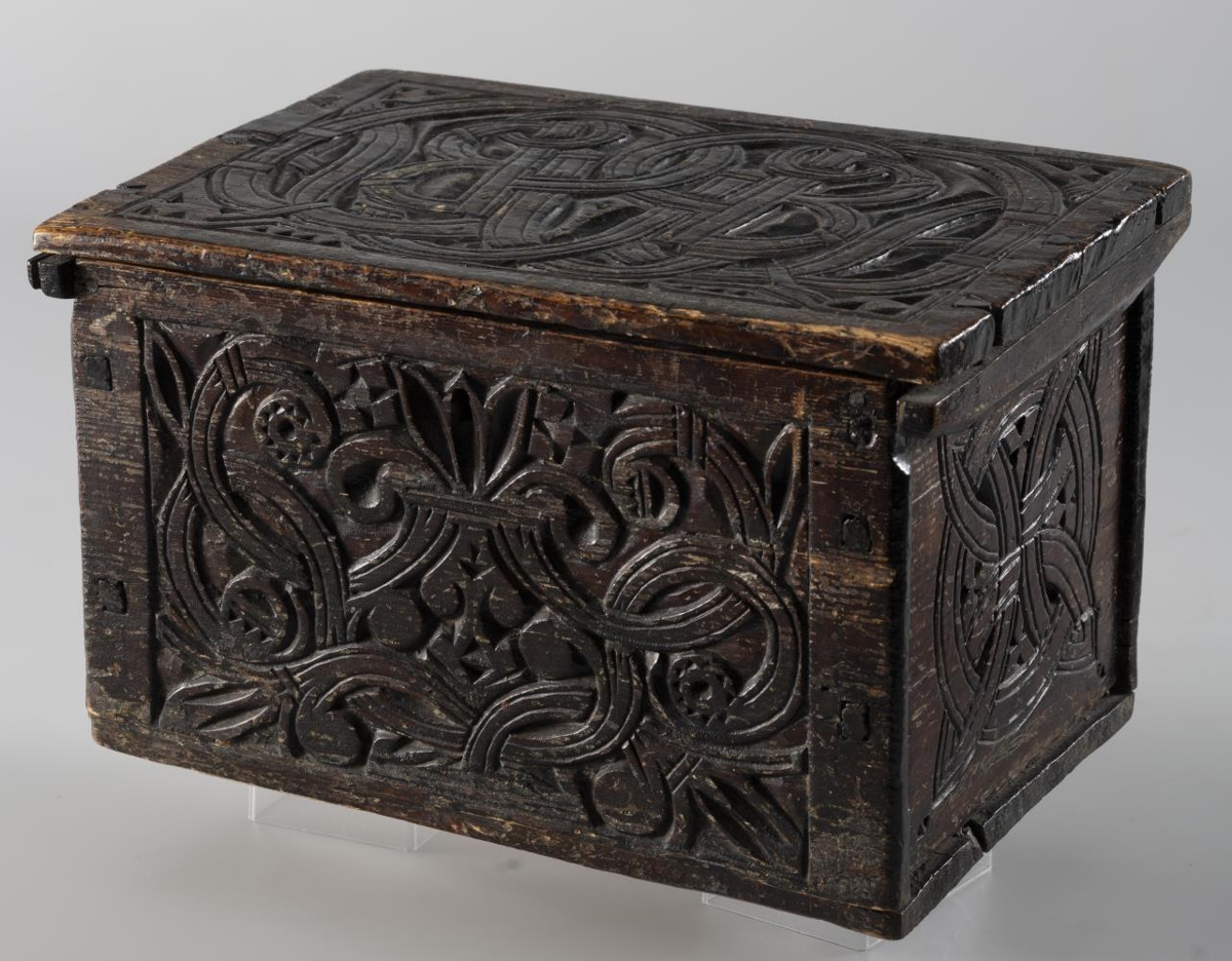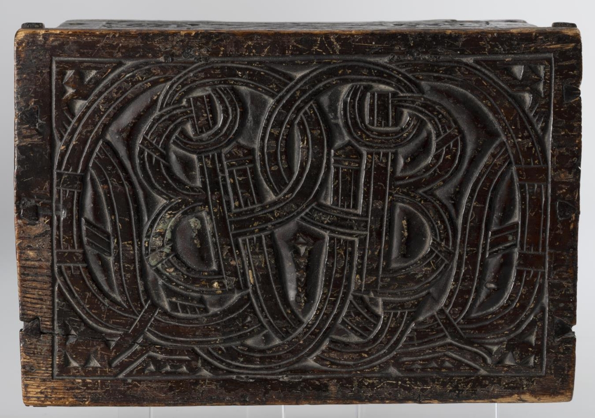 Kistillinn er úr furu, festur saman með trétöppum. Hjarir og skrá eru úr járni. För eru eftir naglagöt að því er virðist eftir lamir er áður voru á honum og eins hefur verið tekið úr honum að innan verðu fyrir stærri skrá. Skráin á kistlinum er nothæf og lykilrauf er á honum að framan verðu. Lengd er 28,5 cm, breidd 19,5 cm og hæð 17,5 cm. Á hliðum loksins á kistlinum eru listar, sem mjókka upp á við til endanna. Sprungur eru í kistlinum á nokkrum stöðum, en að öðru leyti er hann heill og í góðu standi. Hann var málaður með svörtu lakki í kringum 1930, en þegar lakkinu er flett af, koma í ljós leifar af grænni málningu. Útskurður er á loki kistilsins, framhlið og afturhlið og göflum, frekar djúpur. Á loki eru stafirnir JBS sitt hvoru megin, tengdir saman og umvafðir slönguteinungum og þríhyrningslaga skraut í hornum. Á framhlið er jurtaskrautverk með blómi, sem er að springa út og bylgjuteinungar. Á afturhlið eru tvö hjörtu, sem ganga hvort inn í annað og eru bæði með tveim blómum í breiðari enda. Á báðum göflum eru tveir hringir með 1.5 cm millibili. Í þeim eru 4 blöð, sem ganga í gegnum hringana. Ártal er ekki á kistlinum. Útskurðurinn er haglega gerður og af hugkvæmni.