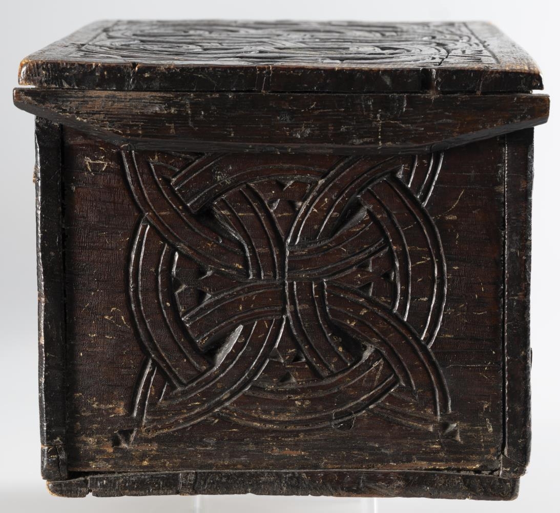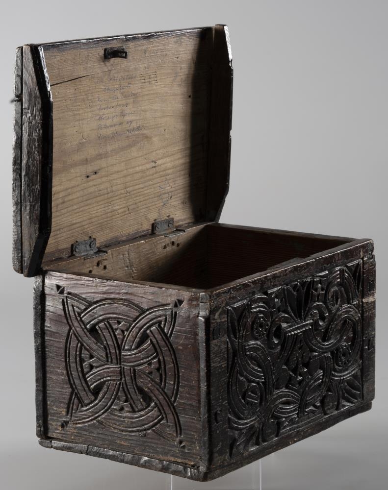 Útskurðurinn á kistlinum ber það með sér, að þar hefur æfður myndskeri verið að verki. Kistillinn hefur varðveist að víst má telja í austan verðum Skagafirði, nánar tiltekið í Viðvíkursveit og eru því líkur á, að myndskerinn hafi búið á þeim slóðum. Þegar farið er að reyna að grafast fyrir, hver myndskerinn hafi verið koma tvö nöfn upp í hugann, þ.e. Hjálmar Jónsson, skáld í Bólu (1796-1875) og Jón Hallgrímsson, málari á Lóni í Viðvíkursveit (1739-1808). Hjálmar var þekktur tréskurðarmaður og gæti verið um hann að ræða. Samanburður á úrskurðinum á kistlinum og útskurði Hjálmars leiðir þó í ljós, að litlar sem engar líkur eru á, að svo hafi verið. Ber þar margt til svo sem myndefni, stafagerð xxxx o.fl., án þess að nánar verði farið út í það.