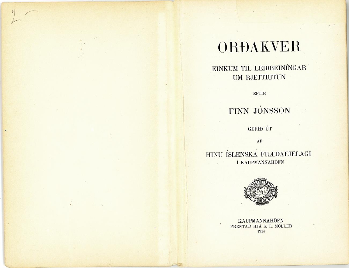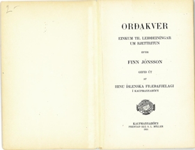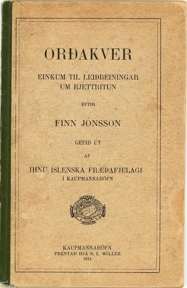 Orðakver : einkum til leiðbeiningar um rjettritun / eftir Finn Jónsson. - 87, [1] bls.