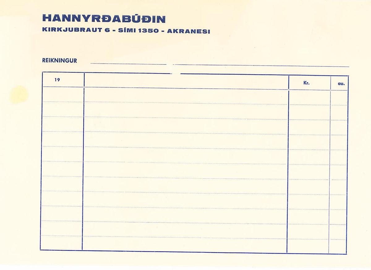 Reikningeyðublað frá Hannyrðabúðinni.
