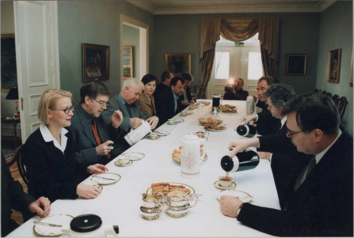 Fundur í og við ráðherrabústaðinn til Tjarnargötu. Óþekkt tilefni.