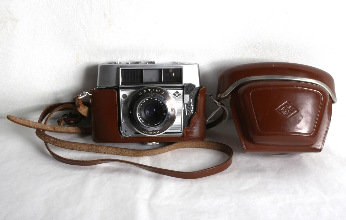 Myndavél af gerðinni "AGFA OPTIMA APOTAR S" ,linsa AGFA colour. Er í brúnu leðurhulstri. Myndavélin úr búi foreldra gefanda, þeirra Hans Kristins Aðalsteinssonar og Láru Ásgerðar Albertsdóttur.