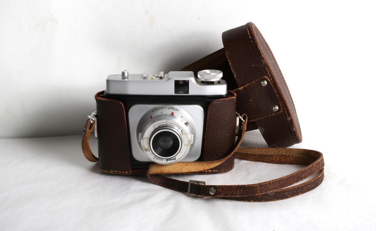 Svört myndavél af gerðinni Certo, einnar linsu myndavél. Ljósmyndavél frá sjötta áratugnum. Myndavélin úr búi foreldra gefanda, þeirra Hans Kristins Aðalsteinssonar og Láru Ásgerðar Albertsdóttur.