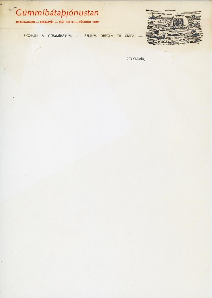 Bréfsefni frá Gúmmíbátaþjónustunni