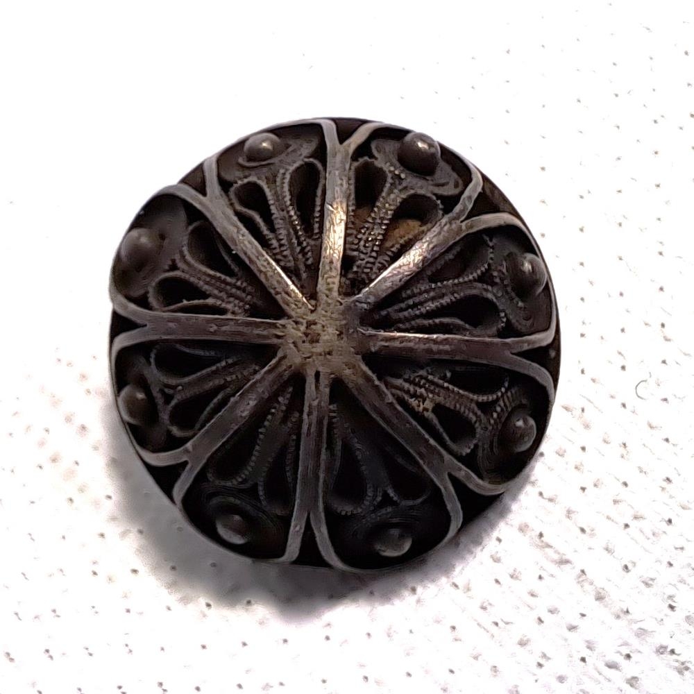 Stakur málmhnappur/tala. Helgi Viðar Björnsson og systkini hans gáfu safninu þennan mun úr búi foreldra þeirra Snæfríðar Helgadóttur (1926-2011) og Björns Gríms Jónssonar (1922-2021). Snæfríður fæddist á Hafurstöðum í Öxarfirði seinna húsfreyja á Kópaskeri í Öxarfjarðarhreppi. Björn Grímur fæddist á Ærlækjarseli í Skinnastaðarsókn.