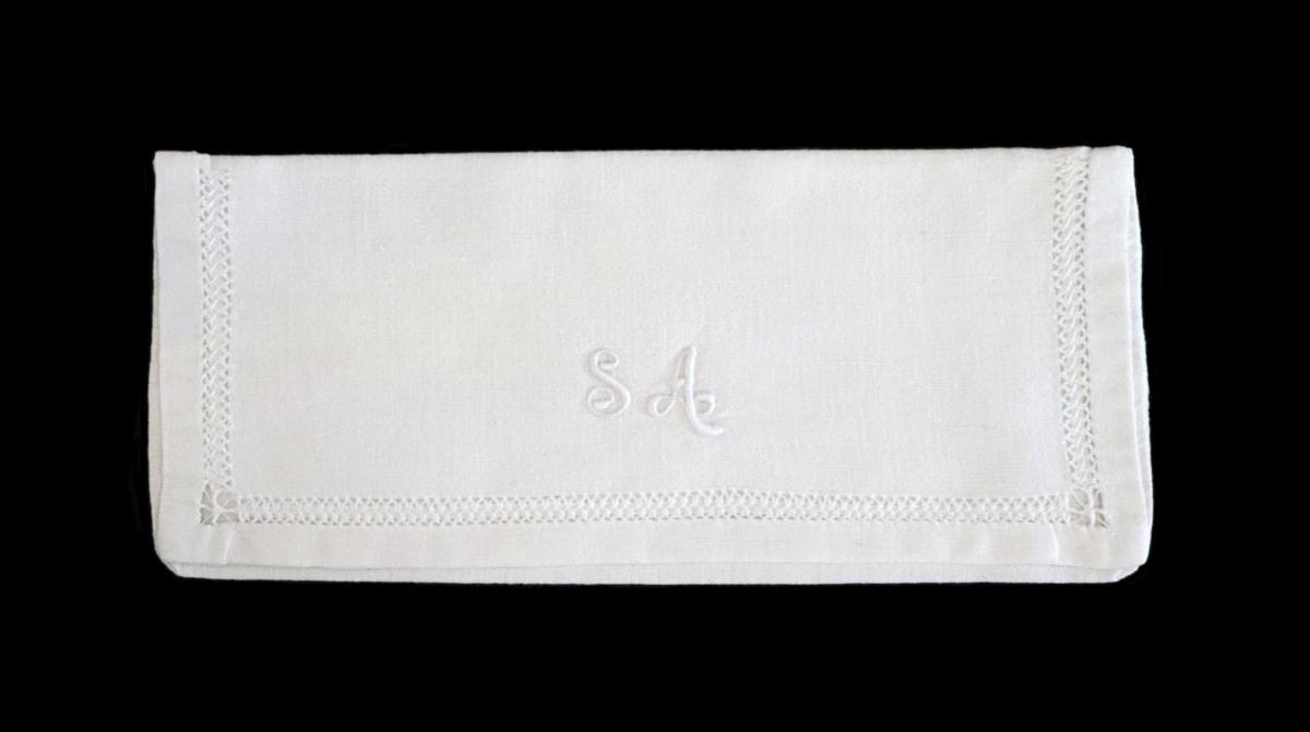 Servíettupoki unninn af Sonju Ásbjarnardóttur, í Húsmæðraskólanum á Varmalandi veturinn 1955-1956.
