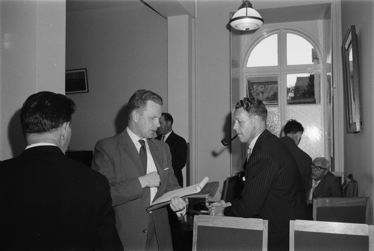 Myndin er tekin í Alþýðuhúsinu 2. júní 1961, þergar talin voru atkvæði um miðlunartillögu sáttasemjara. Vinnumálasambandið samþykkti þá tillögu en Vinnuveitendasambandið hafnaði henni.