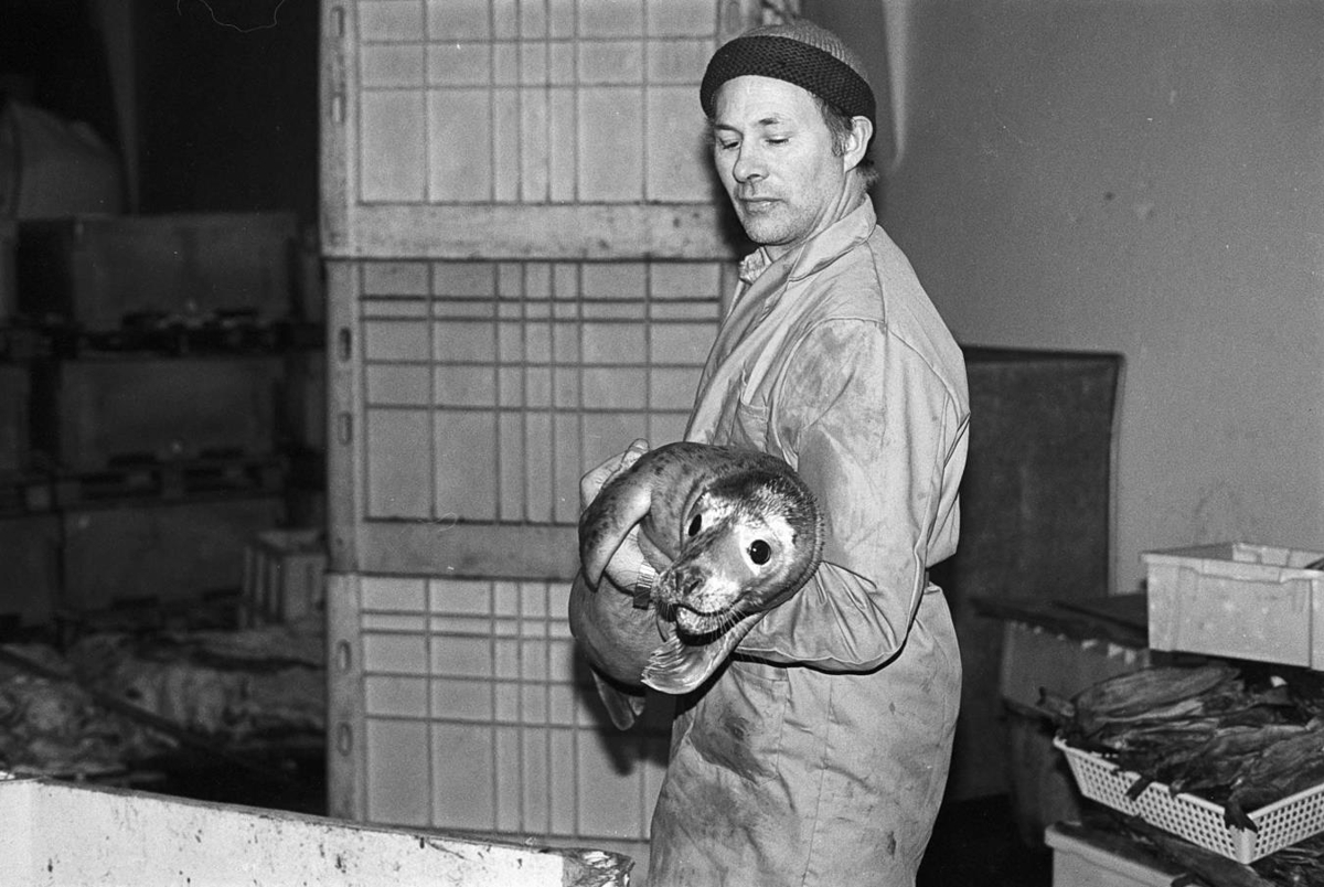Fundur selkóp í Garðinum. Svavar Óskarsson með hann í fanginu. Víkurfréttir - 2. tölublað (16.01.1986) - Tímarit.is, s. 20.