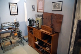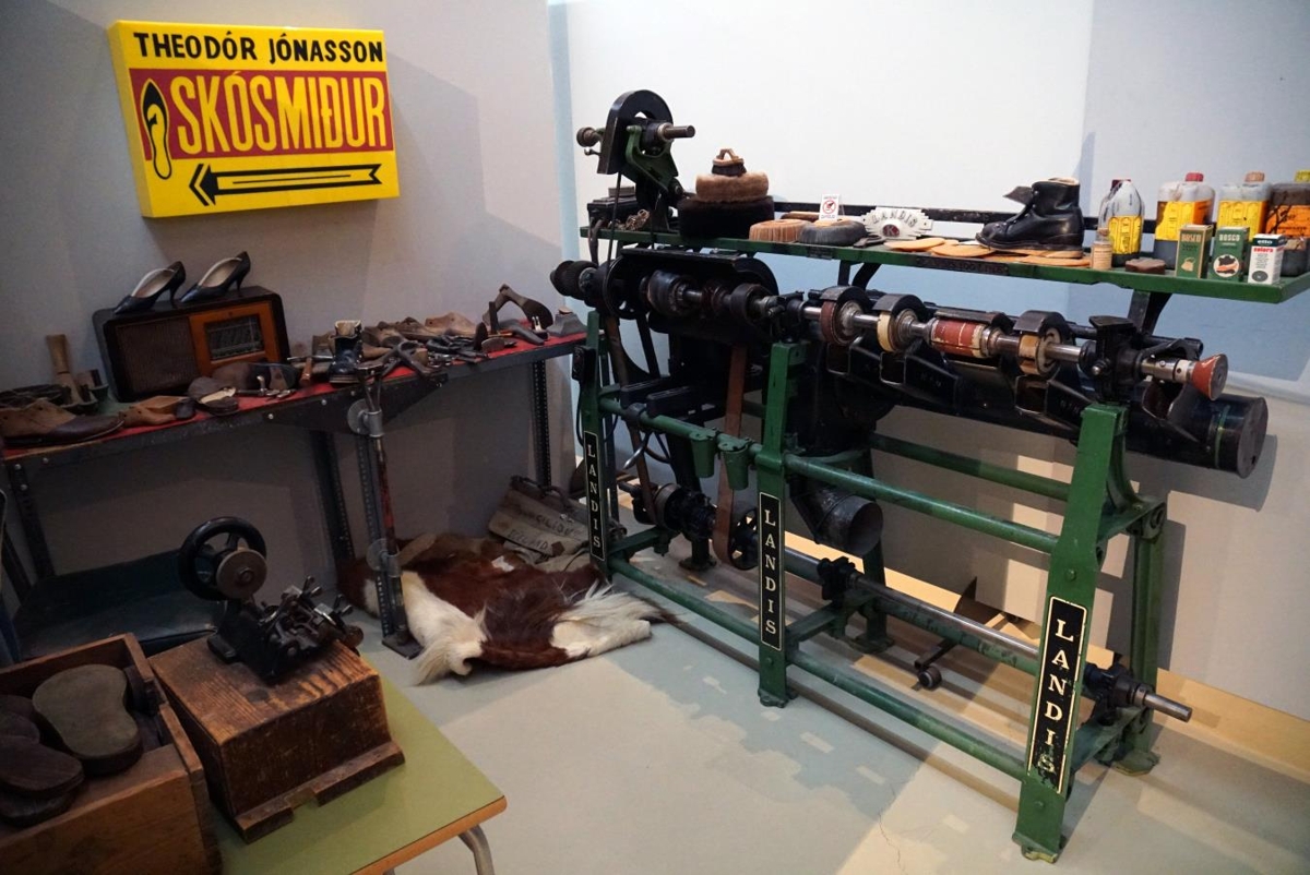Þetta tæki var á skósmíðastofu Tegurdórs Jónassonar skósmiðs sem var við Ásveg 17 í Reykjavík, (Langholtsvegs megin) Þessi skósmíðavinnustofa er nú uppsett í sýningasal Skógasafns með verkfærum skósmiðsins.