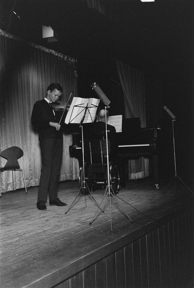 Strákur spilar á fiðlu, Sigursveinn leikur undir á píanó.
