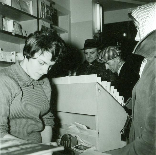 Frá Bókabúð Keflavíkur. Gunna afgreiðir viðskiptavin.
