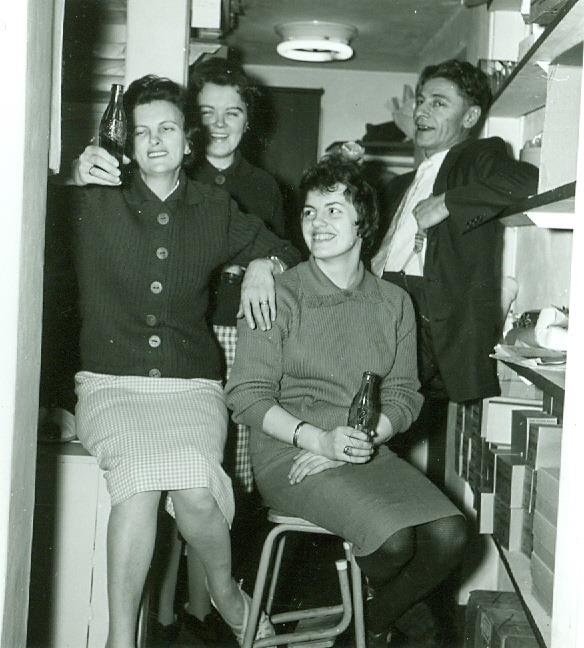 Frá Bókabúð Keflavíkur. Lúlla, Maja, Gunna og Kristinn að loknum vinnudegi.