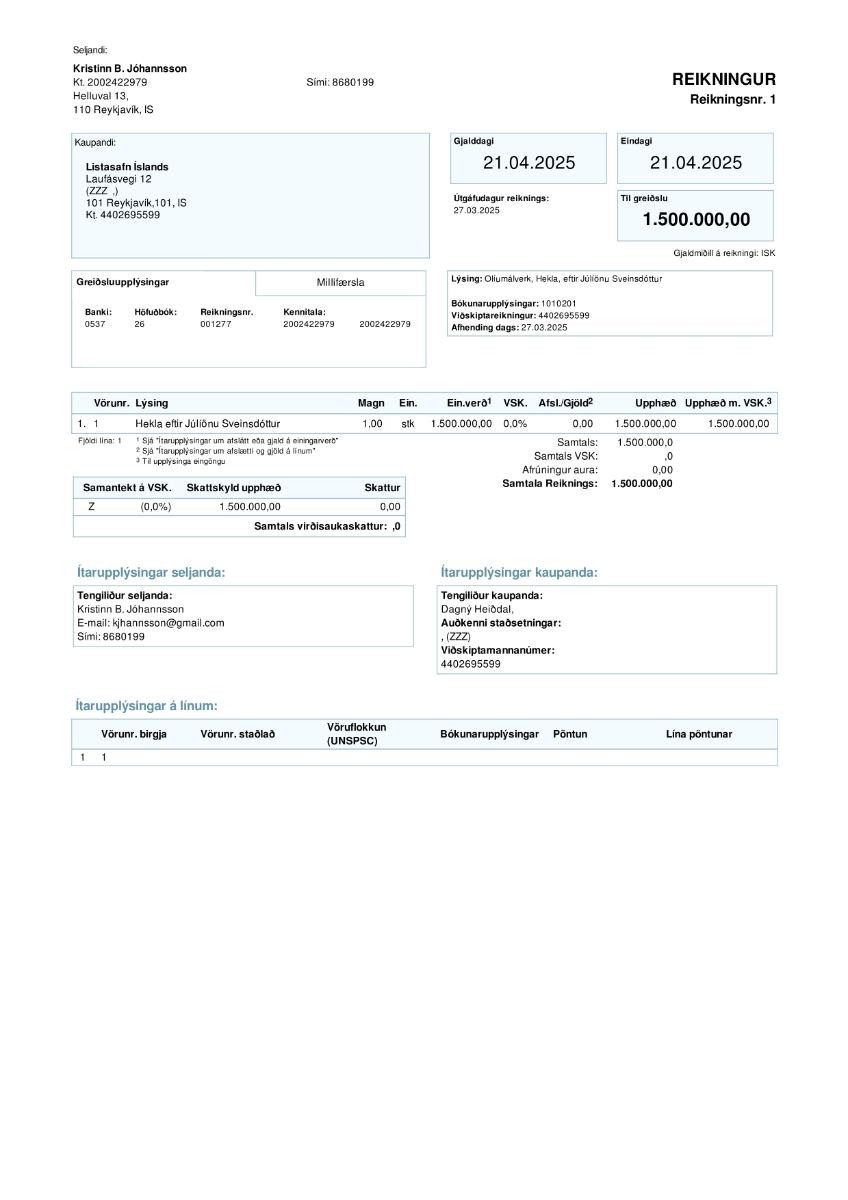 Höfundarréttur: Júlíana Sveinsdóttir-Erfingjar