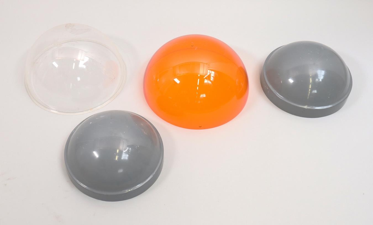 Plastkúplar á nátthús fyrir áttavita - appelsínugulur, grár og glær.
