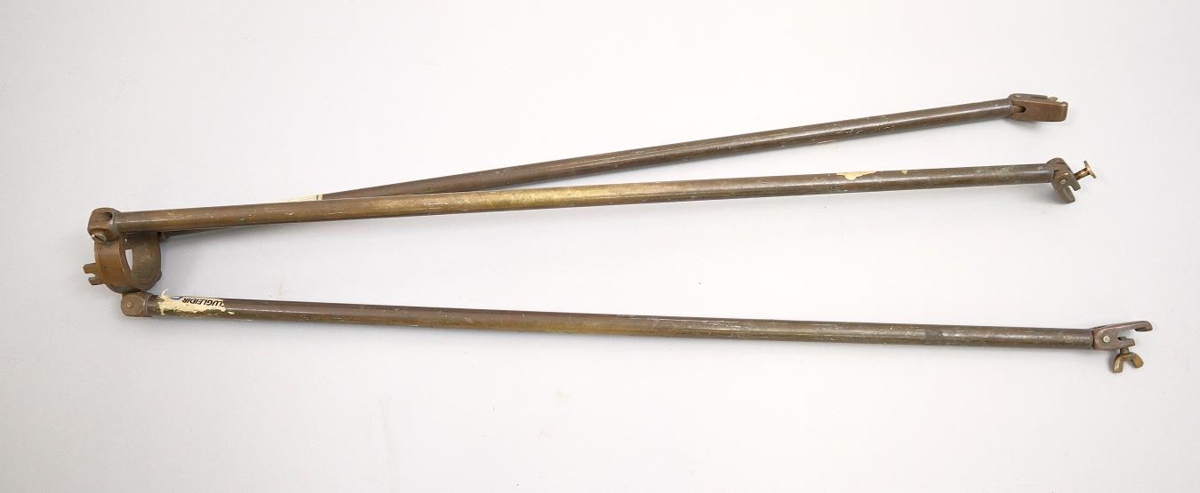 Þrífótur og hilla, bæði fyrir miðurnarskífur. Sjá má glitta í límmiða frá flugfélaginu Flugleiðum á þrífætinum.