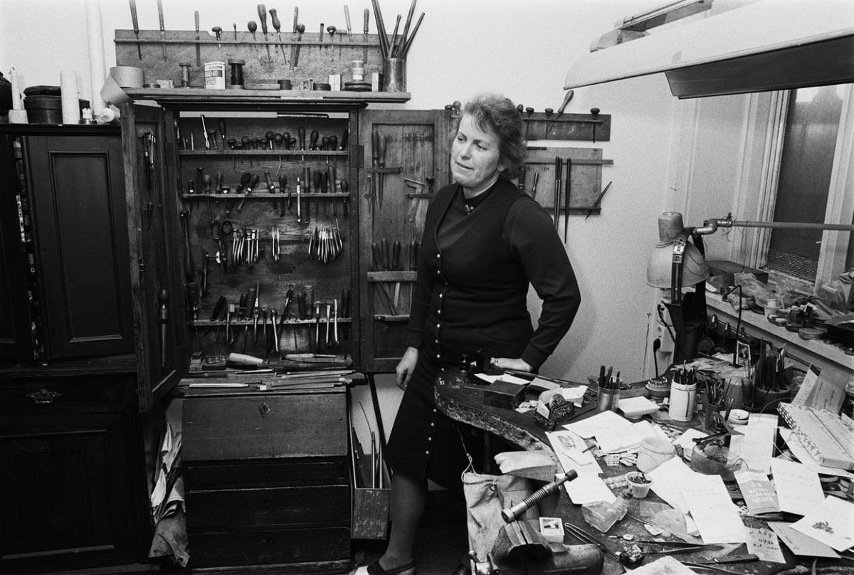 Dóra Jónsdóttir gullsmiður á vinnustofu sinni á Skólavörðustíg.