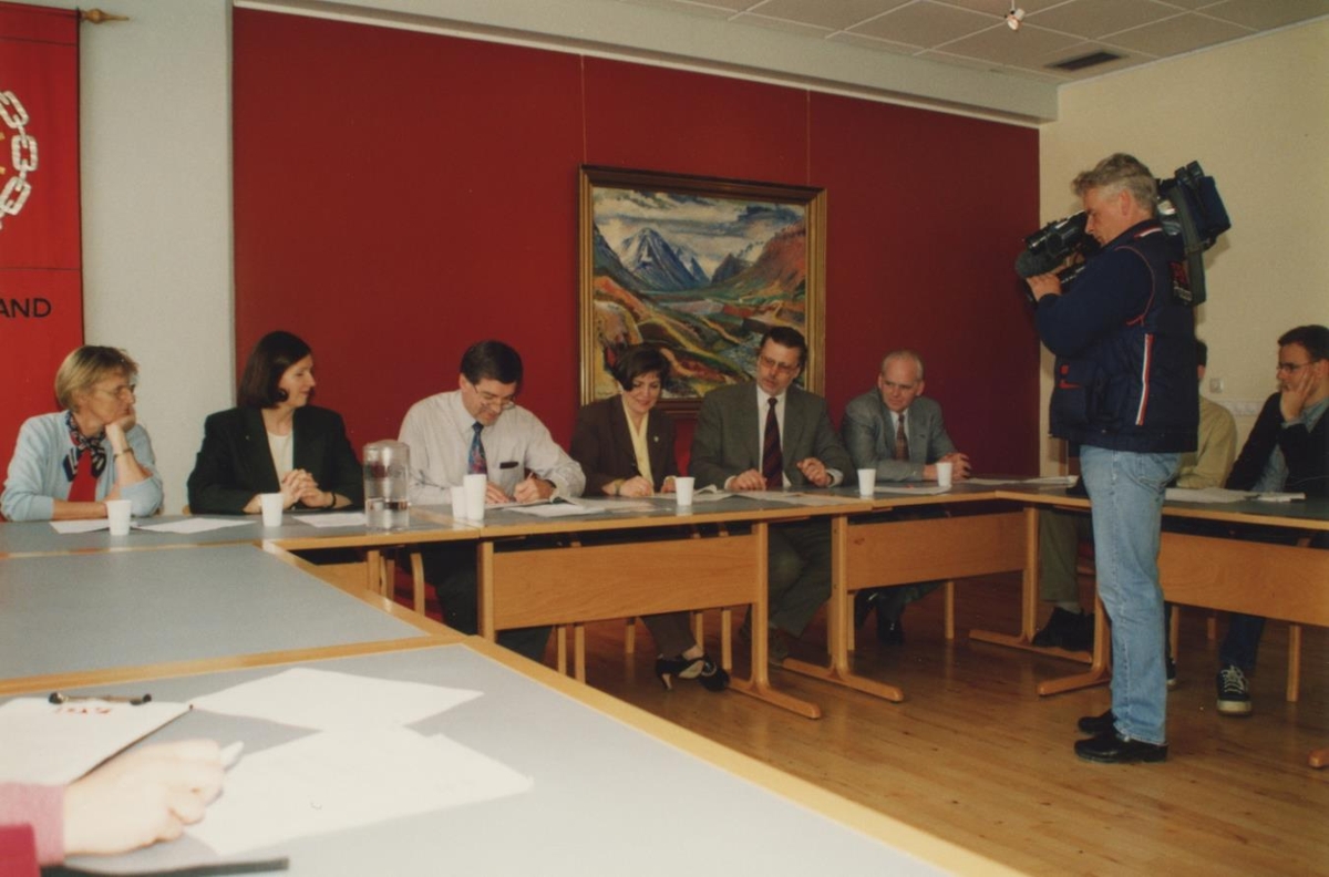 Samstarf v. BSRB ofl. - Samstarf ASÍ, BSRB og Neytendasamtakanna um virkt verðlagseftirlit kynnt á blaðamannafundi 1997.