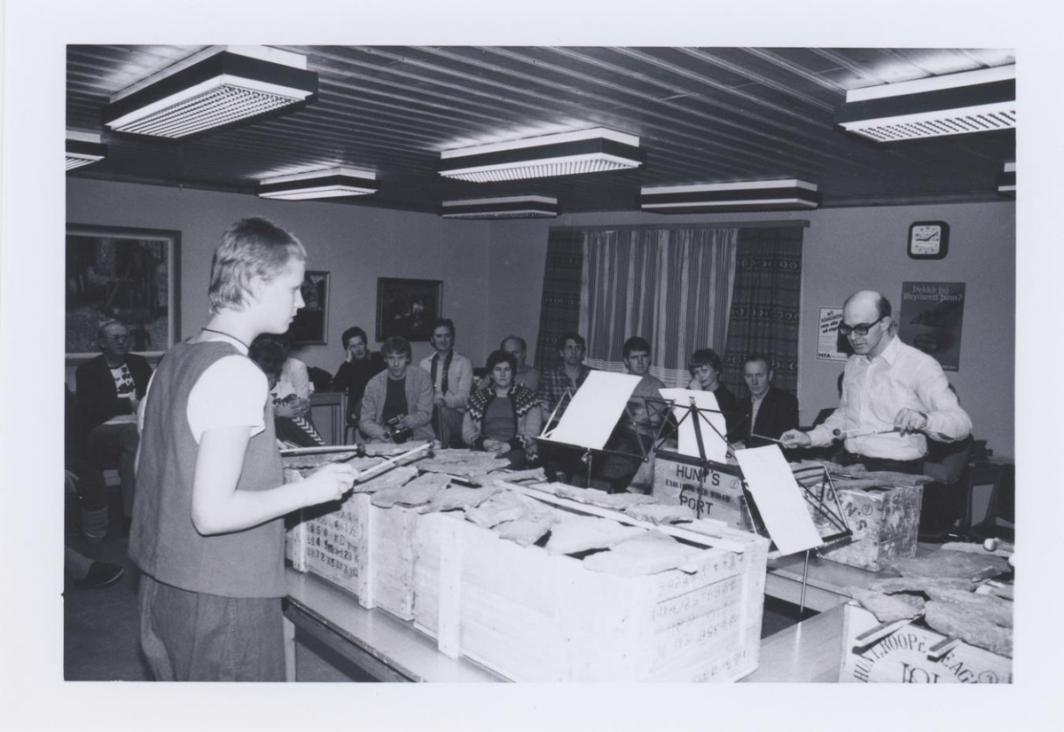 Ýmsar myndir. Steinaspil Elíasar Davíðssonar, hann ásamt tveimur öðrum að spila. Óvíst með ártal, líklega í kringum 1982