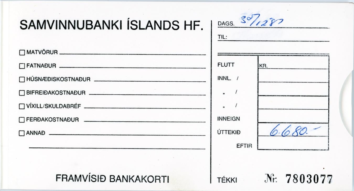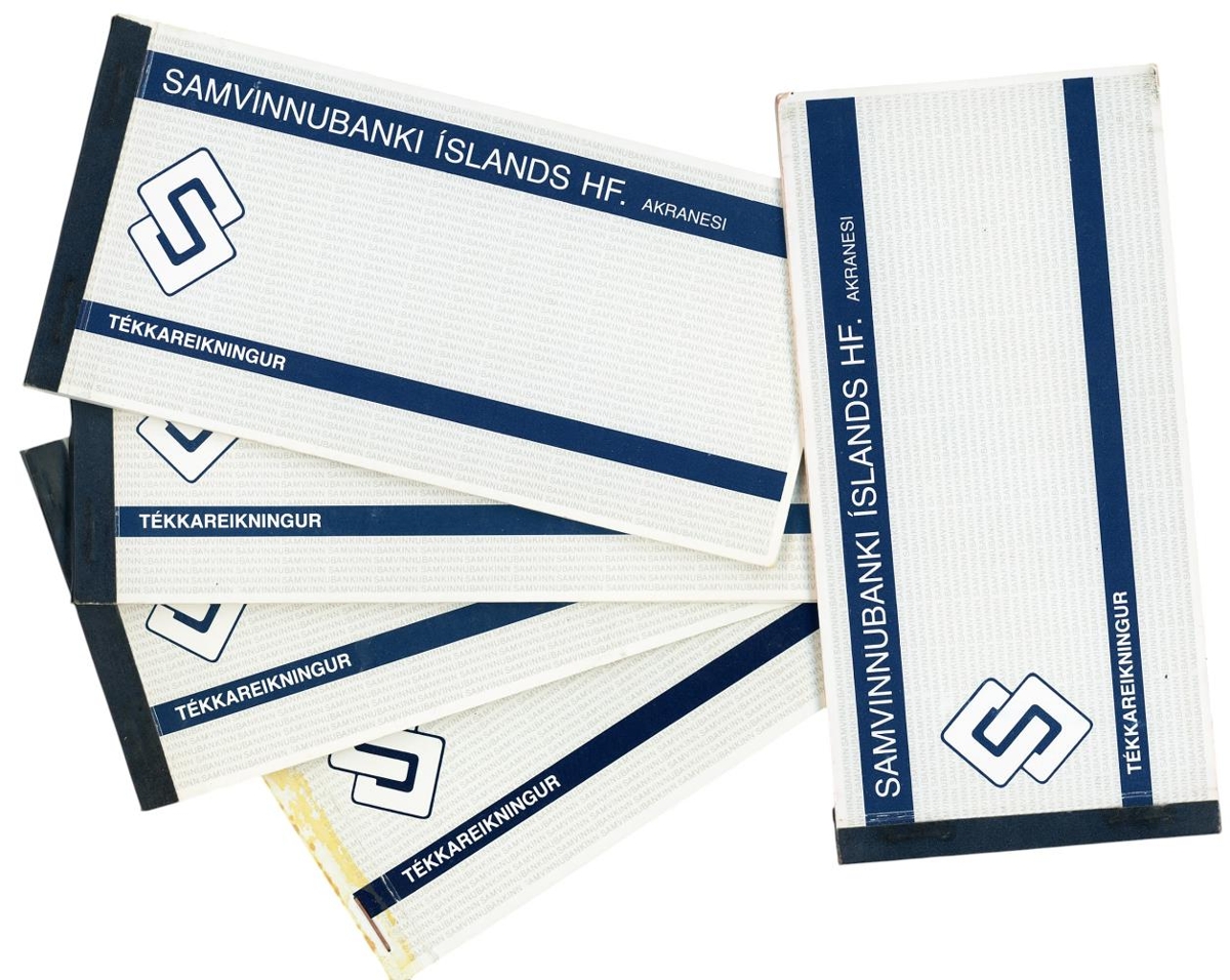 Fimm ávísanahefti / tékkreikningur frá Samvinnubankanum og voru notuð á árunum 1987-1990