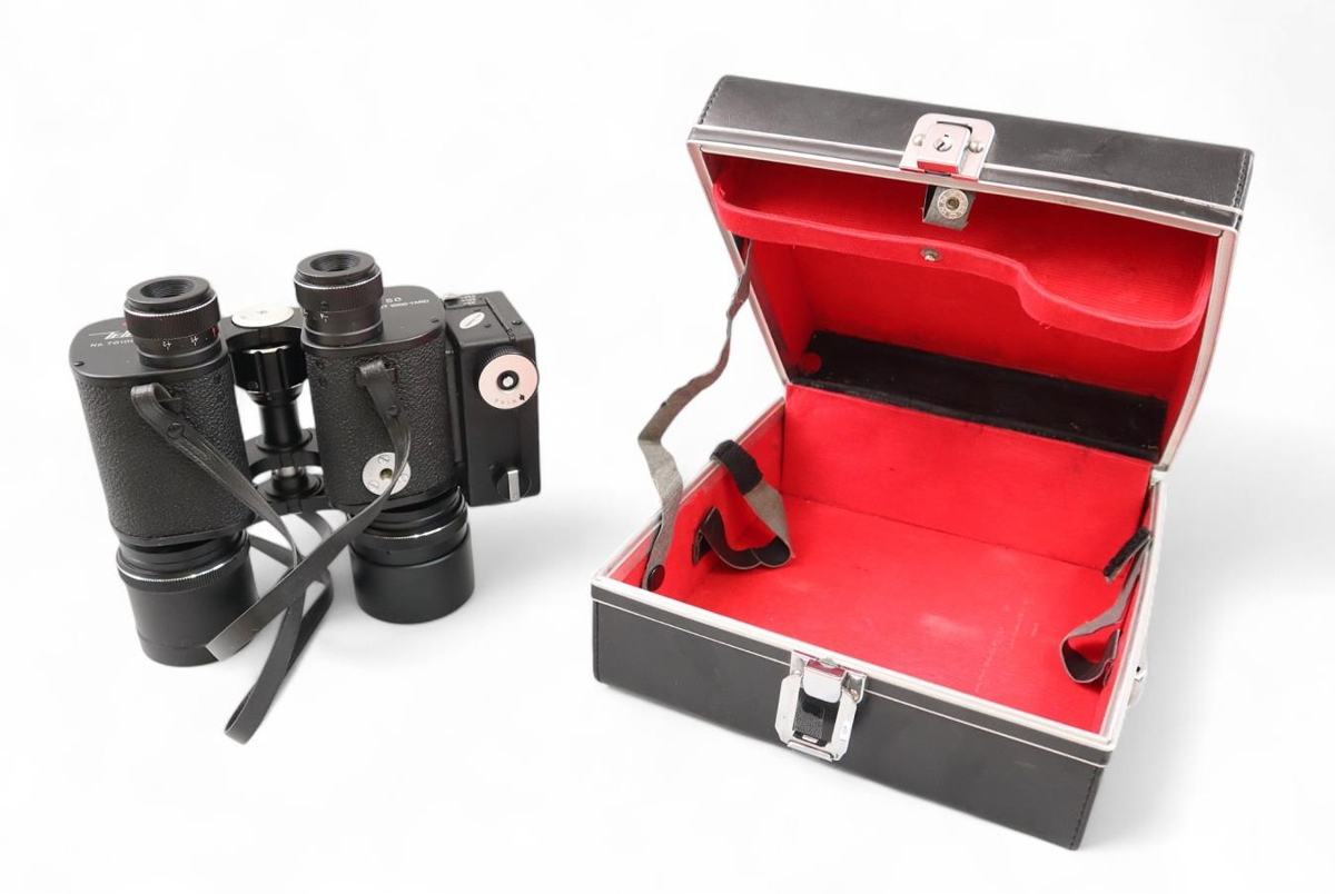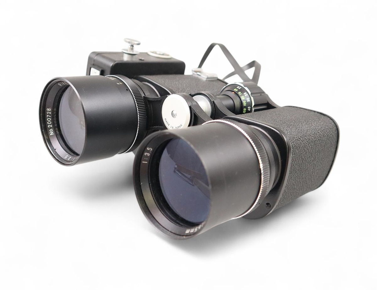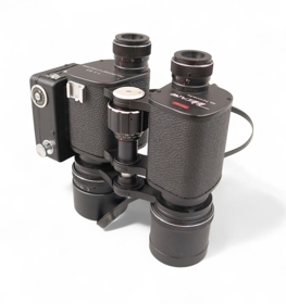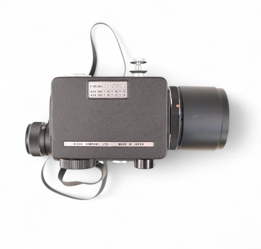 Kíkir með áfastri filmumyndavél. Er í svörtum kassa með rauðu fóðri. Skv. upplýsingum sem fylgja með grip þá var tækið notað við eftirlitsstörf af útlendingaeftirlitinu / Lögreglunni í Reykjavík. Áletrun á kassa: "RICOH". Tækið er af gerðinni RICOH, TELECA (L) 240. Hægt er að festa flass á kíkinn.