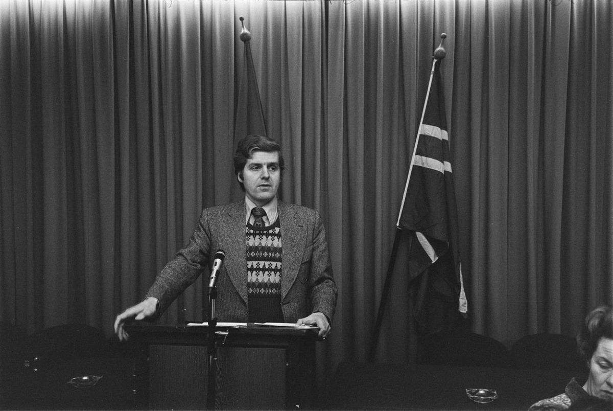 Ragnar Arnalds heldur ræðu á fundinum.