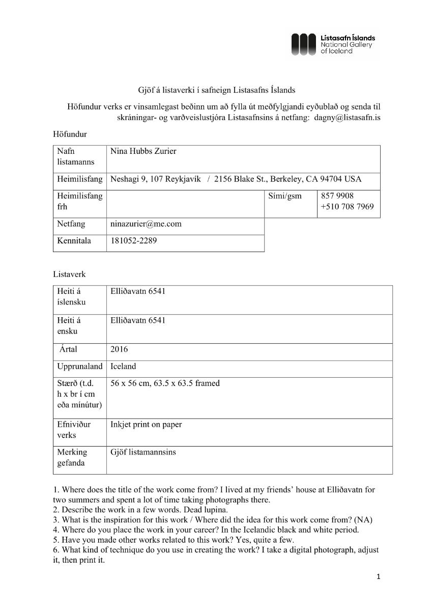 Gjöf listamannsins.