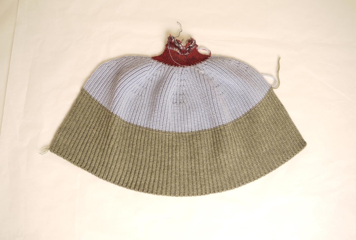 Litaprufa á Sólhattinum úr grárri, blárri og rauðri ull.