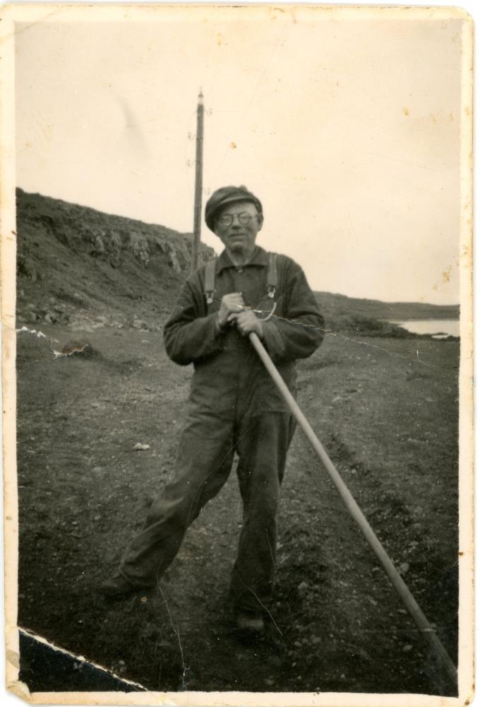 Hjörtur Guðjónsson á Ljótunnarstöðum í vegavinnu við Borgir í Hrútafirði.