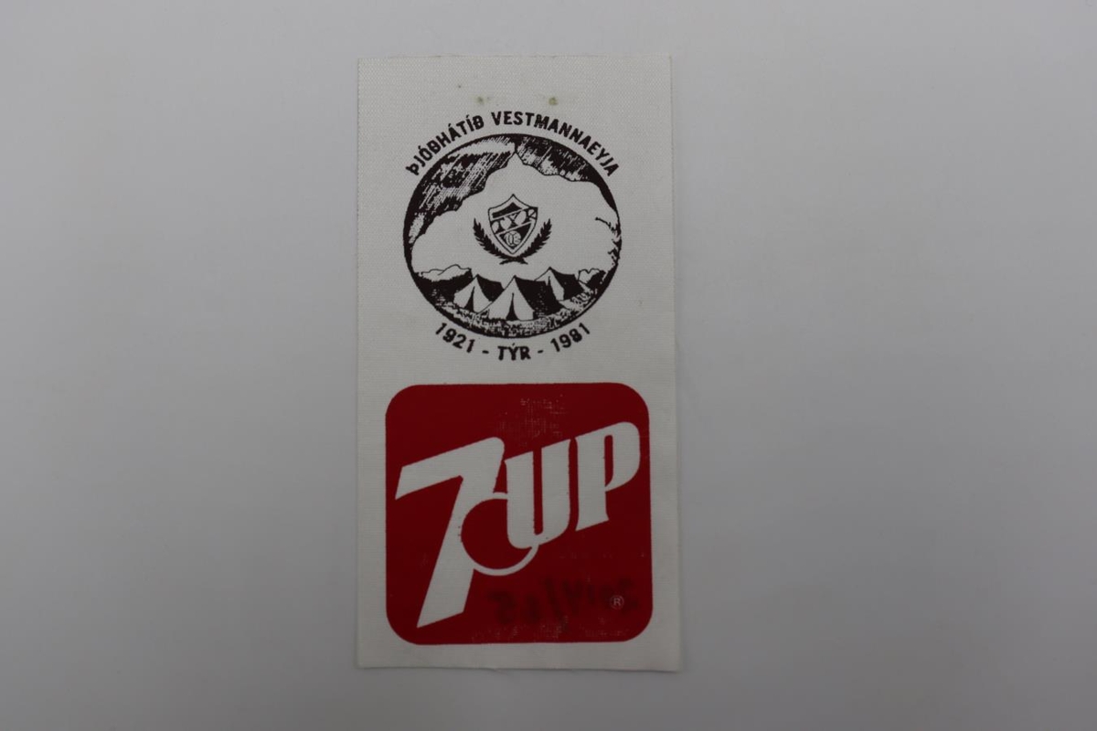Þjóðhátíðarmði frá 1981. Hvítur miði sem festur var í föt eiganda. Efst á miðanum er hringlaga mynd með merki Týs knattspyrnufélags, staðsett um mitt Dalfjall og fyrir neðan eru þjóðhátíðartjöld. Texti umlykur myndina, fyrir ofan stendur "Þjóðhátíð Vestmannaeyja" og fyrir neðan stendur "1921-TÝR-1981". Neðar á miðanum er stór rauður kassi með merki 7up. Miði var festur á með sikkrisnælu.